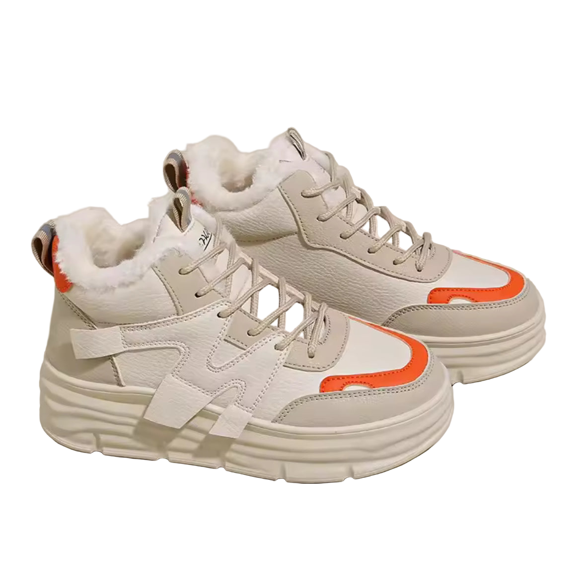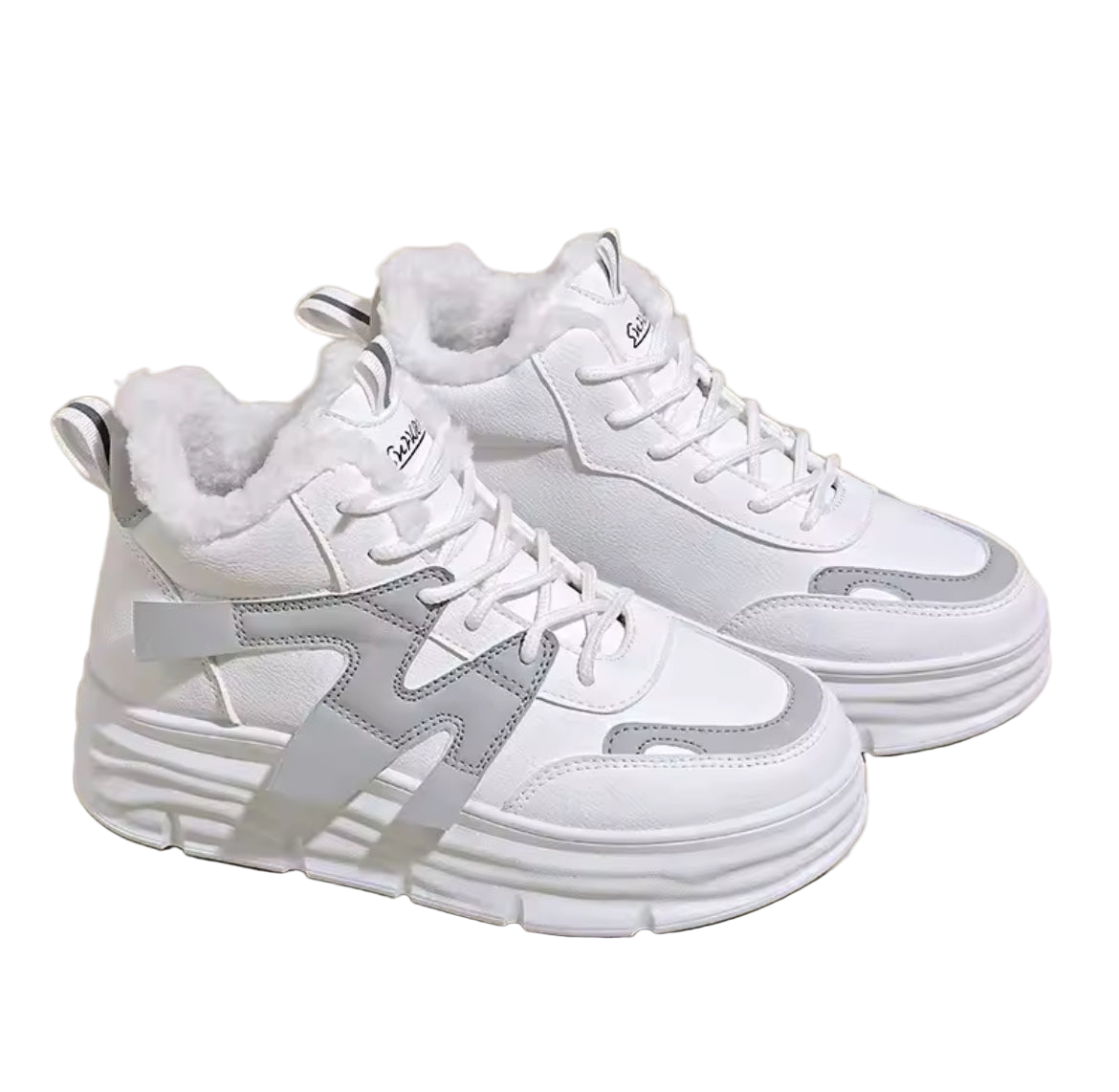 Chaussures Montantes Hiver Blanches Fourrées - Confort et Tendance sur Plateforme